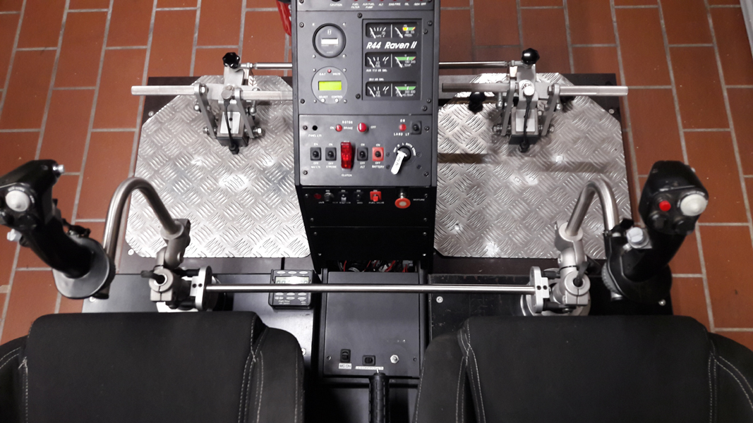 Eigenkonstruktion, Mechanische Verbindung über Koppelstange von Links nach Rechts. Elektrische Verbindung zum Simulator ServerPC über Usb 2x HOTAS Warthog™ Flight Stick, modifiziert.